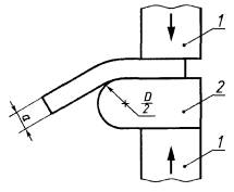 испытании на изгиб до соприкосновения сторон образца (рисунок 6) образец после предварительного