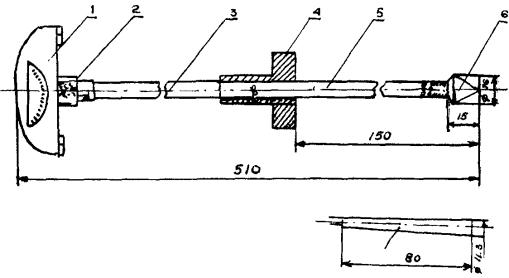 стержня (5) и двух сменных наконечников - конуса (6) и усеченного конуса (7).