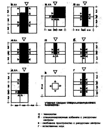 общешкольных помещений общеобразовательных школ с профильным обучением.