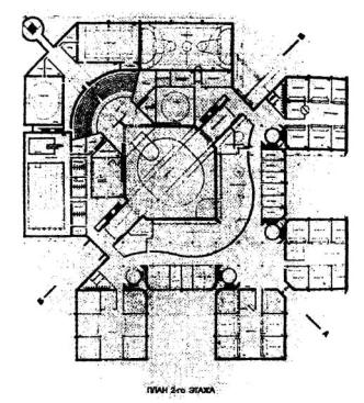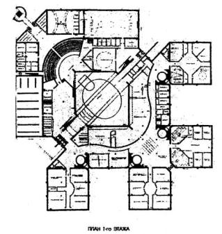 3.3.4. При создании центров досуга целесообразно объединение помещений форума, спортзалов, зрительного зала, студий, столовой - видео-кафе, администрации. Рекомендуется предусматривать игровые спортзалы и бассейны.