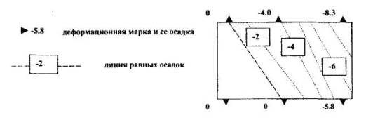 12. Вычисление осадок деформационных марок. Для каждой деформационной марки выполняются вычисления по формулам: S=Нi – Нl,