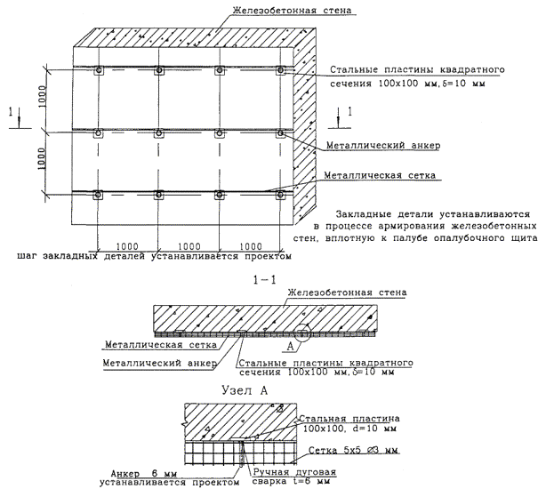 Сварка анкеров с закладными пластинами и установка металлических сеток
