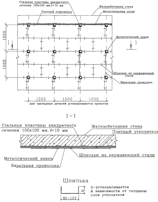 - закладные детали (стальные пластины квадратного сечения размером 100´100 мм), устанавливаемые при армировании стен монолитных зданий вплотную к палубе опалубочного щита.