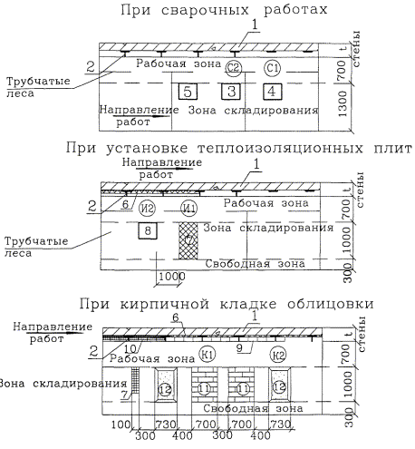 2.2 До начала работ по облицовке фасадов зданий должны быть закончены все строительные, монтажные и специальные работы, доставлены на площадку и подготовлены к работе монтажный кран, леса, подвесные площадки, необходимые приспособления, инвентарь и материалы, очищена рабочая зона от мусора и обеспечен свободный доступ к рабочему месту.