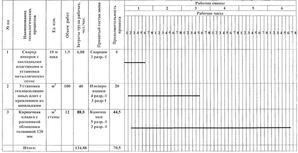 6.1 Для выполнения работ по устройству облицовки кирпичом с утеплением используется комплексная бригада в составе 5 человек:
