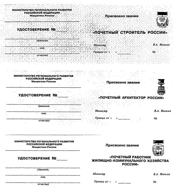 хозяйства" и "Почетный строитель России" (согласно приложению N 11).