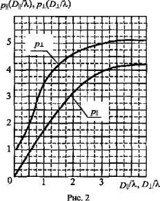 В соответствии с п. 2.3.1. устанавливается необходимость введения поправочного коэффициента р, определяемого по графику, приведенному на рис. 1. По формуле (2.5) имеем Rгр = 12,622 м. При этом расстояние от геометрического центра антенны до точки М1 равно 5,831 м, т. е. оно не превышает Rгр Поэтому необходимо ввести поправочный коэффициент. С учетом того, что α = 1,7, имеем (по графику на рис. 1) р = 1,05.