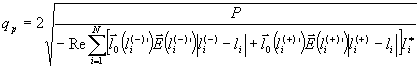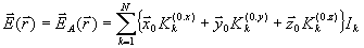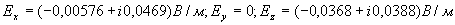 4) Расчет напряженности электрического поля выполняется по методике, изложенной в п. 2.3.2. Составляющая поля  возникающее из-за наличия подстилающей поверхности, определяется по формуле (2.18), результирующий вектор - по формуле (2.17). Расчетные компоненты вектора :