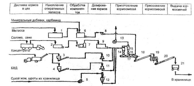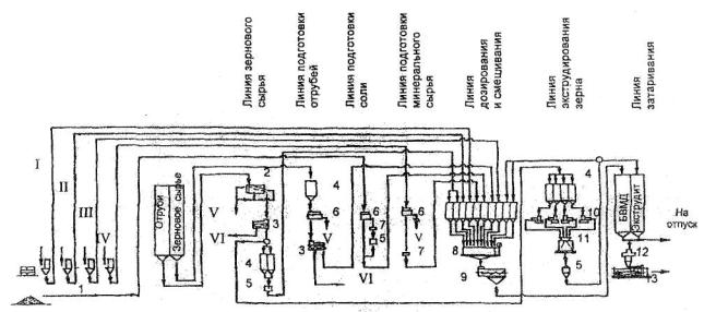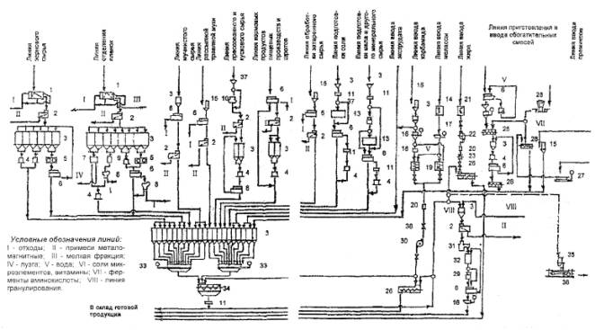 Рисунок Г.1 - Принципиальная схема технологического процесса производства комбикормов и БВД