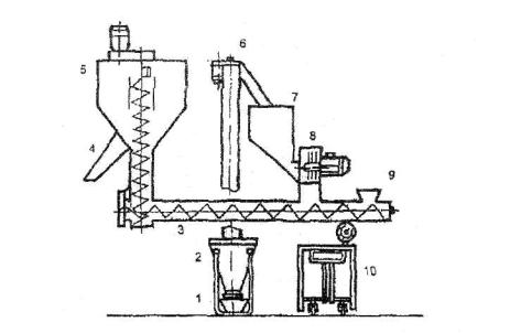 смеситель; 8 - дробилка зерна; 10 - питатель шнековый;
