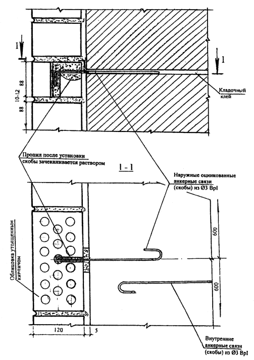 НОРМАЛЬ Н12-3. КРЕПЛЕНИЕ ОБЛИЦОВОЧНОГО КИРПИЧА К ПОЛИСТИРОЛБЕТОННЫМ БЛОКАМ ПРИ НЕСОВПАДЕНИИ ГОРИЗОНТАЛЬНЫХ ШВОВ
