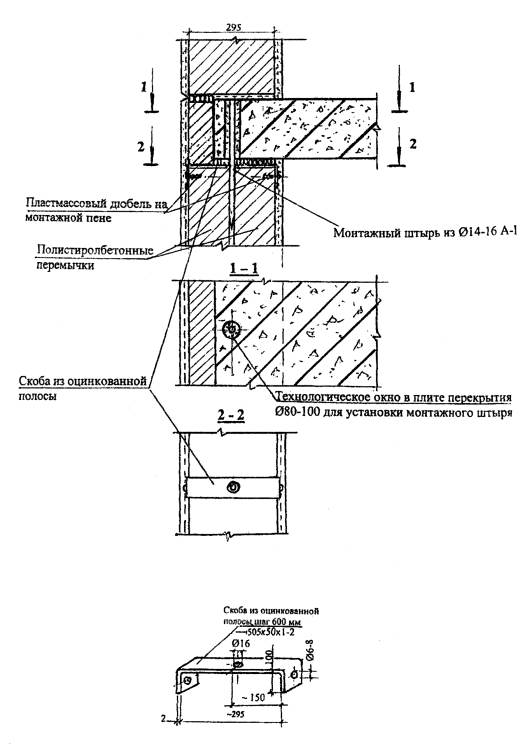 НОРМАЛЬ 14-4. КРЕПЛЕНИЕ ПОЛИСТИРОЛБЕТОННЫХ ПЕРЕМЫЧЕК В СТЕНАХ С ОШТУКАТУРИВАЕМЫМ ФАСАДОМ