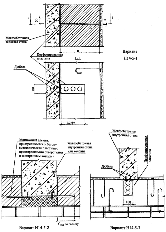 НОРМАЛЬ Н14-5. КРЕПЛЕНИЕ КЛАДКИ ИЗ ПОЛИСТИРОЛБЕТОННЫХ БЛОКОВ К ВНУТРЕННИМ ЖЕЛЕЗОБЕТОННЫМ СТЕНАМ И КОЛОННАМ