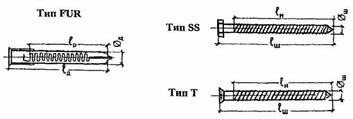 РЕКОМЕНДУЕМЫЕ КРЕПЕЖНЫЕ ЭЛЕМЕНТЫ - ДЮБЕЛИ СО СТАЛЬНЫМИ ШУРУПАМИ ФИРМЫ