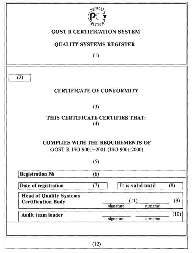 Настоящий стандарт устанавливает порядок сертификации систем менеджмента качества на соответствие требованиям ГОСТ Р ИСО 9001 в Системе сертификации ГОСТ Р.