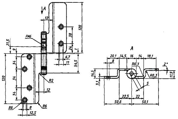 Рисунок Б.24 - Пример накладной петли из алюминиевого профиля для дверных блоков из алюминиевых сплавов и поливинилхлоридных профилей