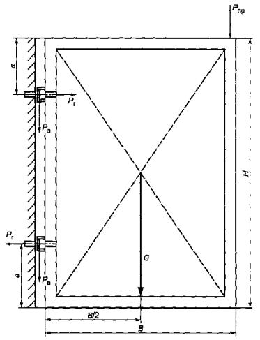 Рисунок Б.23 - Пример накладной петли из алюминиевого профиля для оконных и дверных блоков из алюминиевых сплавов и поливинилхлоридных профилей максимальной массой 80 кг