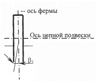где Аф - характерная площадь фермы, равная сумме характерных площадей отсеков, м2; Сz = 0,3Cx; Ppi - ветровая нагрузка на i - провод, Н, определяемая по указаниям пп 2.13 - 2.18; n - число проводов. Ветровая нагрузка на ферму ригеля поперечины в направлении, перпендикулярном оси пути, может быть принята равной 30 % от ветровой нагрузки на ферму вдоль оси пути. Наибольшая величина суммарной ветровой нагрузка имеет место при угле скольжения β1 = 15° (рис. 2.6). В последней формуле аэродинамический коэффициент лобового сопротивления несущих тросов (контактных проводов) при угле скольжения β1 = 15° определяют по формуле: Cxi = Cx1 cos2β1 = Cxl