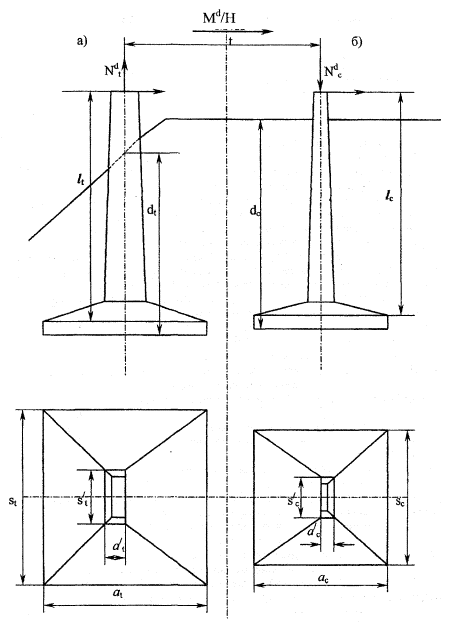 Монтажные нагрузки 2.51. Конструкции контактной сети (опоры, консоли, жесткие поперечины, кронштейны фиксаторов) следует проверять расчетом на действие монтажных нагрузок, возникающих при погрузке, разгрузке и перевозке, выполняемых, в соответствии с требованиями «Норм по производству и приемке строительных и монтажных работ при электрификации железных дорог», СТН ЦЭ 12, а также при монтаже как самих конструкций, так и располагаемых на них элементов контактной сети (проводов и др.). 2.52. При расчете конструкций на воздействие нагрузок возникающих при погрузочно-разгрузочных работах и перевозке, должны быть рассмотрены схемы строповки и погрузки, вызывающие наибольшие усилия в конструктивных элементах. Если возникающие при этом монтажные нагрузки приводят к необходимости увеличения сечений конструкции, то в проекте должны быть предусмотрены более рациональные схемы строповки и погрузки, по которым и определяют затем значения монтажных нагрузок. Монтажные нагрузки при погрузке, разгрузке и перевозке конструкций следует определять с учетом коэффициентов учитывающих динамические воздействия: при подъеме кранами 1,25 при перевозке транспортом 1,60 При проектировании типовых конструкций следует принимать коэффициент надежности по монтажной нагрузке равным 1,6. 2.53. Опоры и жесткие поперечины, перевозимые или складируемые в несколько рядов, нужно проверять расчетом на действие нагрузок от вышележащих конструкций на нижний ряд. 2.54. Опорные и поддерживающие конструкции необходимо проверять на нагрузки, возникающие при монтаже цепных подвесок и одиночных проводов, подвешиваемых со стороны поля. При этом полученные усилия необходимо умножать на коэффициент kД = 1,25, учитывающий динамическое воздействие нагрузки. Если методы монтажа отличаются от приведенных в СТН ЦЭ 12, то величины этих нагрузок следует определять в зависимости от методов монтажа. Если намечаемый метод монтажа создает нагрузки, недопустимые для типовых конструкций, то должны быть внесены изменения в метод монтажа или в конструкцию. 2.55. Горизонтальные и наклонные элементы решетки металлических опор и жестких поперечин при угле наклона 30° и менее, а также консоли и кронштейны фиксаторов проверяют расчетом на вес монтера, равный 1000 Н. При этом следует принимать следующие климатические условия: скорость ветра 10 м/с, температура воздуха минус 15°С. 2.56. Анкерные опоры и их оттяжки следует рассчитывать на усилия вдоль пути от анкеруемых проводов. Для определения расчетной нагрузки величину нормативного натяжения в проводах в основных сочетаниях следует увеличивать на коэффициент надежности равный 1,15. Нагрузки при обрыве проводов 2.57. Определение нагрузок аварийного режима на консольные опоры контактной сети следует производить для случая обрыва несущего троса цепных контактных подвесок. Нагрузки при обрыве проводов на опорах питающих линий определяют, исходя из условий обрыва одного из проводов, подвешенных, на опоре, дающего наибольший изгибающий или крутящий момент на опору. Продольную (вдоль линии) сила, приложенную в точке крепления провода при его обрыве, принимают равной 0,5 наибольшего натяжения провода, подвешенного на металлической опоре, и 0,3 наибольшего натяжения провода при его подвеске на железобетонной опоре. Нагрузки на концевые, угловые и анк