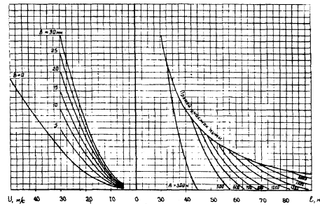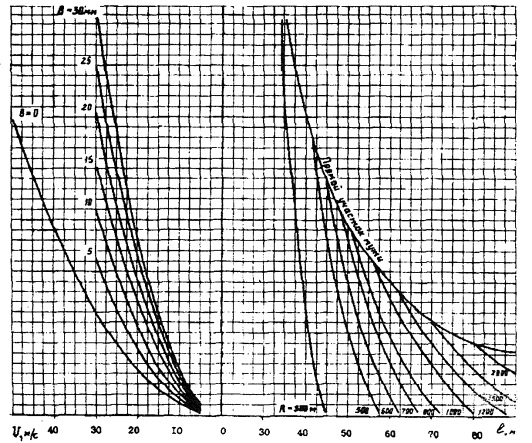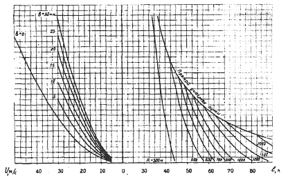 2.48. Нормативное и расчетное значения максимальной температуры воздуха следует принимать равными абсолютной максимальной температуре воздуха tmax с учетом воздействия солнечной радиации (прямой и рассеянной). Эквивалентное увеличение максимальной температуры воздуха в результате нагрева проводов солнечной радиацией определяют по выражению: tр = 0,0162φmах, где φmах - максимальное значение суммарной солнечной радиации, Вт/м2, принимаемое по табл. 5 СНиП 2.01.01. Для районов, расположенных между 46 и 66 градусами с.ш., температуру нагрева проводов солнечной радиацией tp можно принять равной 14°С. 2.49. При определении длины анкерных участков цепных подвесок изменение температуры воздуха следует принимать между среднегодовым и нормативным значениями. При определении диапазона температуры для расчета перемещения анкерных грузов следует учитывать нагрев проводов солнечной радиацией и тяговыми токами. 2.50. Температуру беспровесного положения контактного провода следует определять по выражению: t0 = где Более точно температуру беспровесного положения контактного провода можно определить, исходя из следующих соотношений: если значения если Здесь