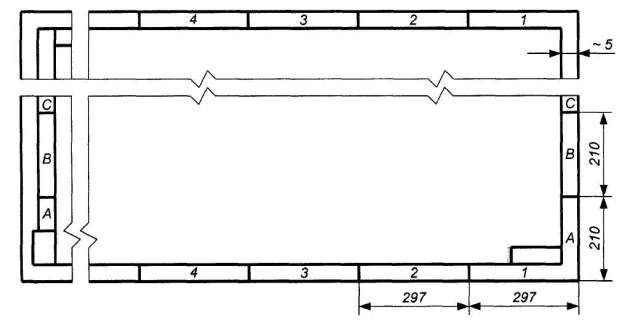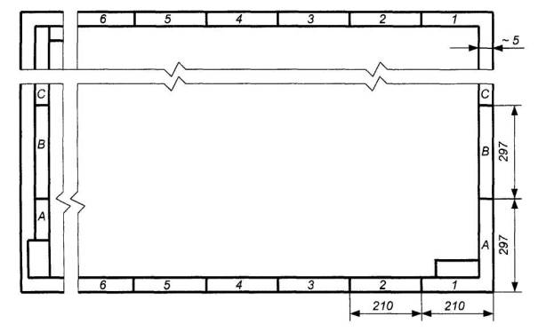 сторон формата А4 (рисунки Б.1 и Б.2 приложения Б). Отметки наносят: по горизонтали -