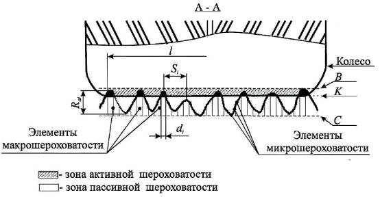 элементов макро-шерохова-тости с шиной автомобиля, Nk |