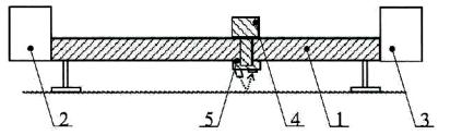 подвес датчика, передвигающийся вдоль балки 1 с помощью пары винт-гайка; 5 -
