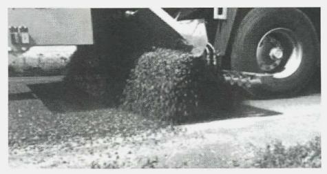 7.5.6 Температура при распределении битума: - для вязких битумов марок БНД 60/90, БНД 90/130 в пределах +150° - +160°С; - для марок БНД 130/200 в пределах +100° - +130°С; - для полимербитумных вяжущих в пределах +140° - +160°С. Температуру и концентрацию эмульсии устанавливают в зависимости от погодных условий следующим образом: - при температуре воздуха ниже +20°С эмульсия должна иметь температуру +40 - +50°С (при концентрации битума в эмульсии 55–60 %). Подогрев эмульсии до такой температуры осуществляется непосредственно автогудронатором; - при температуре воздуха выше +20°С эмульсию можно не подогревать (при концентрации битума в эмульсии 50 %). 7.5.7 Щебень необходимо распределять сразу после розлива битума (не допуская его загустевания). Дополнительного нагрева щебня перед распределением не требуется. Распределение щебня производится самоходными или навесными щебнераспределителями, осуществляющими распределение “в одну щебёнку” при плотном расположении по поверхности обрабатываемого покрытия. Не допускаются пропуски и чрезмерное распределение щебня по поверхности. После прохода распределителя щебня окончательное выравнивание и исправление поверхности осуществляется вручную гладилками и скребками. 7.5.8 Сразу после россыпи щебня производится уплотнение гладковальцовыми катками массой 6-8 тонн (4-5 проходов по одному следу). Затем тяжелыми гладковальцовыми катками массой 10-12 тонн (2-4 прохода по одному следу). Для лучшего проявления шероховатой структуры целесообразно последнюю стадию уплотнения производить гладковальцовыми катками с обрезиненными вальцами. 7.5.9 При использовании битумных эмульсий работы ведутся в следующем порядке: - смачивание обрабатываемого покрытия водой (возможно с активирующими добавками) в количестве 0,4-0,5 л/м2; - розлив эмульсии по покрытию в количестве 30 % от расхода, указанного в таблице 8; - распределение 70 % щебня от расхода, указанного в таблице 10 (разрыв не более 20 м с интервалом во времени не более 5 мин. от момента розлива эмульсии); - розлив оставшейся эмульсии; - распределение оставшегося щебня; - укатка катками массой 6-8 тонн по 3-4 прохода по одному следу (начало укатки должно совпадать с началом распада эмульсии); - уход за устроенной поверхностью. 7.5.10 Уход за поверхностной обработкой осуществляется в течение первых двух-четырех суток после устройства и заключается в регулировании движения (последовательные проходы автотранспорта по определенным продольным полосам со скоростью не более 40 км/час) и систематическом наметании неприжившегося щебня механическими щетками с кромки на покрытие. По истечении срока ухода неприжившийся щебень должен быть удален с поверхности покрытия. В случае использования анионактивной эмульсии движение следует открывать не ранее чем через одни сутки после устройства поверхностной обработки. 7.5.11 При назначении расходов материалов для устройства шероховатого слоя методом поверхностных обработок рекомендуется также использовать Индивидуальные элементные сметные нормы и расценки на работы по ремонту автомобильных дорог с использованием новой техники и технологий (2003 г.). 7.6 Устройство поверхностных обработок с использованием литых эмульсионно-минеральных смесей (ЛЭМС, “Сларри Сил”, микросурфасинг и др.): Материалы для устройства ЛЭМС выбираются с учетом ВСН 27-76, ТУ 218 РСФСР 536-85, Пособ