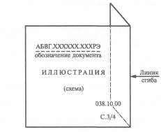 6.19 При расположении иллюстрации на листе увеличенного формата фальцовка листа должна обеспечивать видимость номера страницы, как это показано на рисунке 1. Незаполненная страница (обратная сторона листа) должна быть обозначена на предыдущей странице в виде дроби (с. 3/4). 6.20 Для установления связи иллюстраций с текстом иллюстрации следует присваивать номер и название. Для иллюстрации на нескольких листах на каждом листе номер и название рисунка следует повторить. Номер и название рисунка должны быть расположены в центре страницы под иллюстрацией вне области воспроизведения.