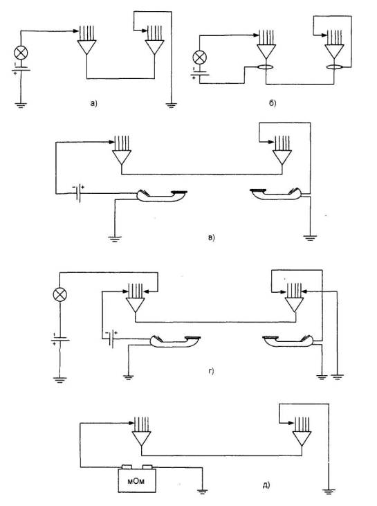 ж) Цепи, входящие в состав проверяемой схемы и отделенные от нее