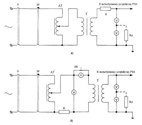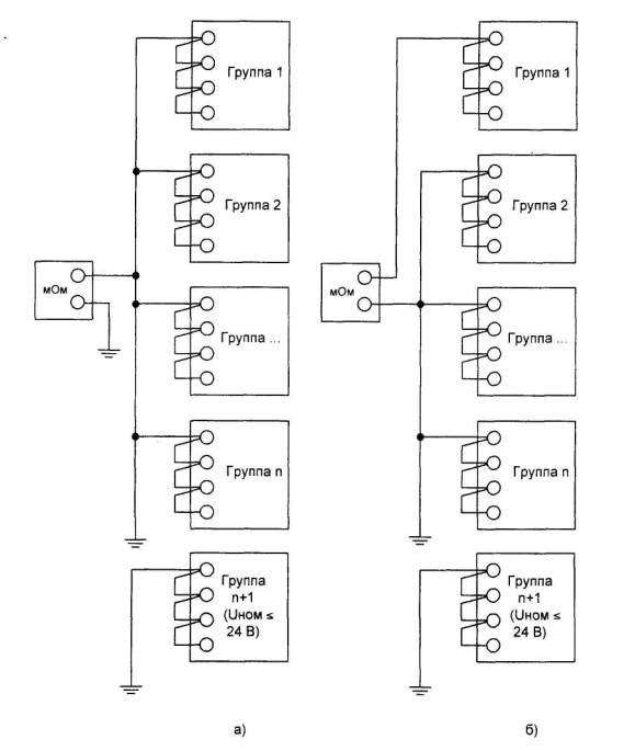установленными на выводах для проверки изоляции. От испытуемой схемы