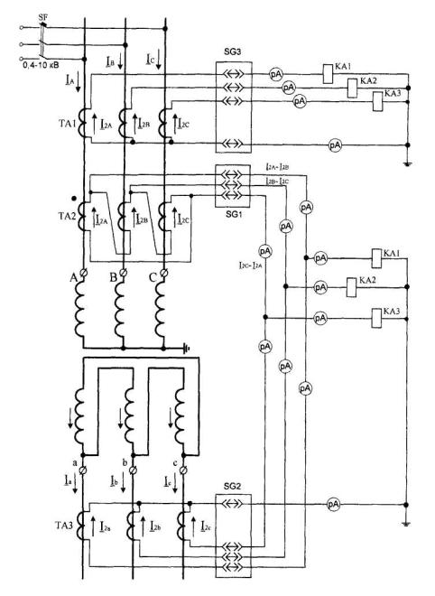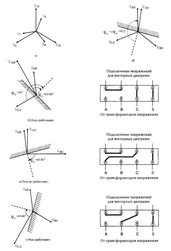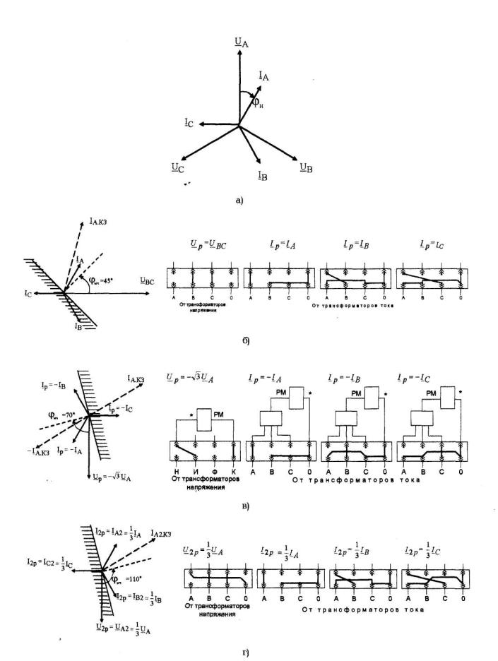 диаграмме переключателей, согласование полярностей обмоток реле и измерительных