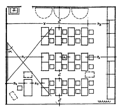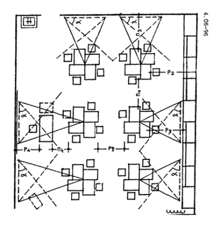 расстановке), не менее. - Р2 - расстояние от ученических столов до задней стены