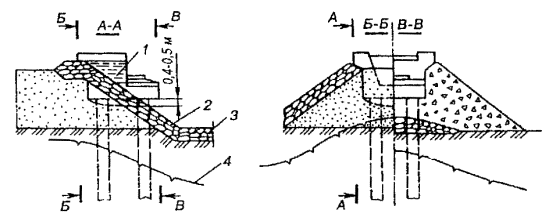 водотоков - выше или ниже уровня первой подвижки льда. Опоры с фундаментами