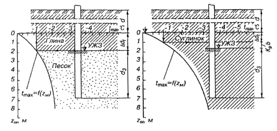 грунты, температура грунта, принцип I, принцип II, буровой столб, основания