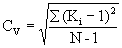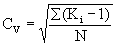 где: ΣHi - сумма всех отметок уровня данного ряда; N - общее число членов ряда; вычисляют величины Ki = рассчитываются коэффициенты вариации (Сv) по формуле: