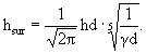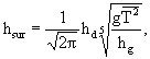 где: VW - расчетная скорость ветра, м/с; d - средняя глубина на участке нагона, м; L - длина разгона, м; a - угол между направлением ветра и геометрической осью нагонной части водоема, а для открытых берегов - нормалью к береговой линии; K - безразмерный коэффициент, ориентировочно заключенный в пределах 6 × 103 - 12 × 10-3. СНиП [1] предлагает формулу расчета ветрового нагона практически однотипную с приведенной выше, но с другим значением коэффициента K. 5.8 Расчет волнового нагонаВолновой нагон формируется при обрушении волн и его величина зависит от расчетной высоты волны по линии первого обрушения (hsur) и ее среднего периода. Расчет волнового нагона выполняется по формуле, приведенной в [11, 13]: