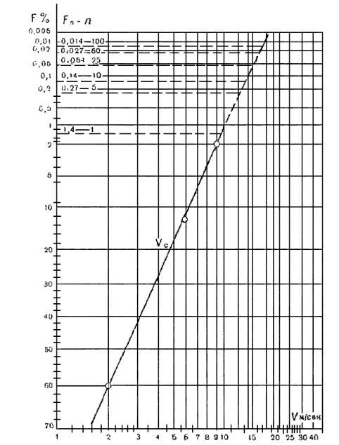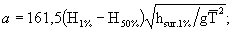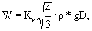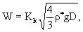 крупность в волновом потоке, м/с; Величина W вычисляется по формуле: