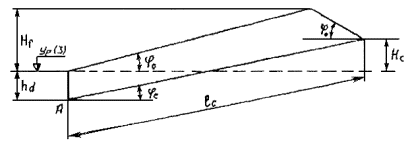 где: hr - высота накатывающегося роллера «посуху», м, включающая глубину последнего ее обрушения (dcr,u) и величину (hsur). Величина hr рассчитывается по формуле: