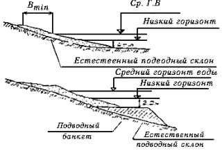 естественного откоса грунтов, слагающих подводный береговой склон со