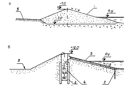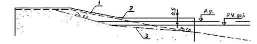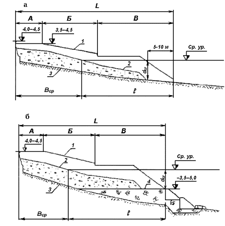 VI класса капитальности на отмелых берегах (i < 0,03) к отметке расчетного уровня рекомендуется