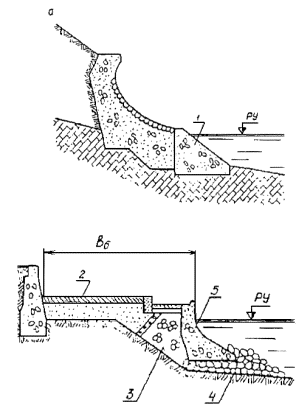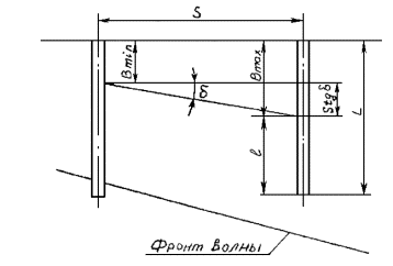 по высоте внешней и теневой граней буны, принимаемый в зависимости от глубины у