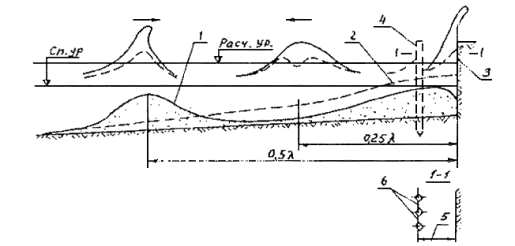 высота волны в режиме, знаменатель - то же в системе. 4) Для сооружений