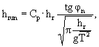 где: trum - время пробега обращающейся волны по зоне прибоя; hsur - высота волны при первом обрушении; tgjcr - уклон дна в зоне прибоя. Высота волны при ее первом обрушении рассчитывается по формуле: