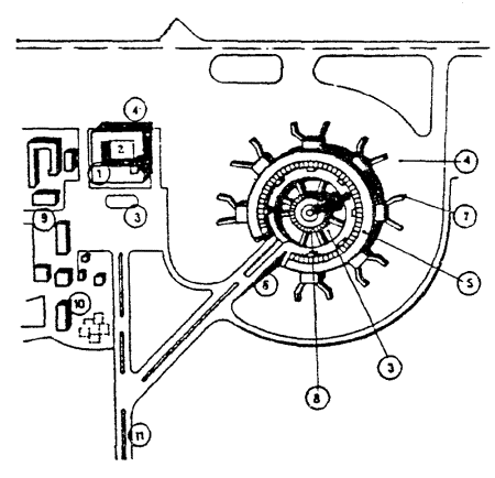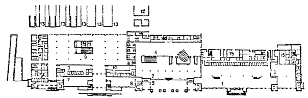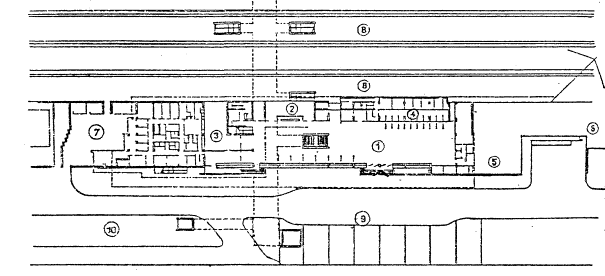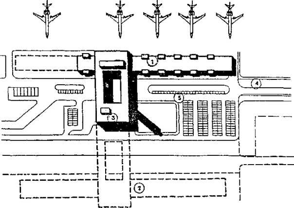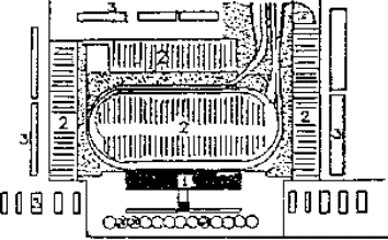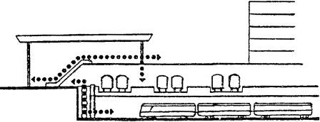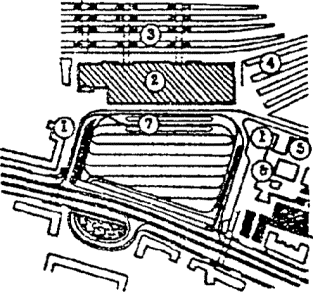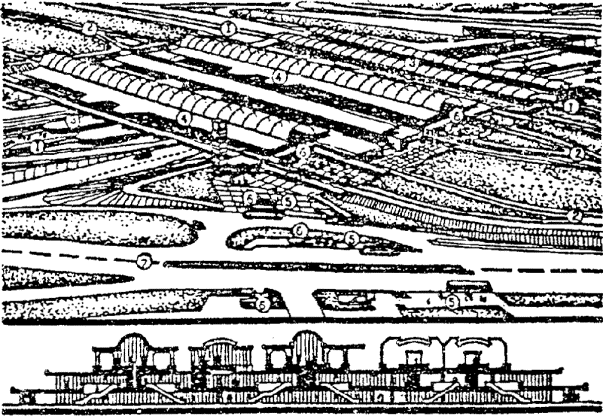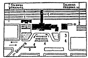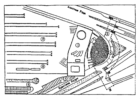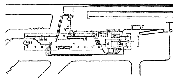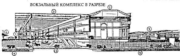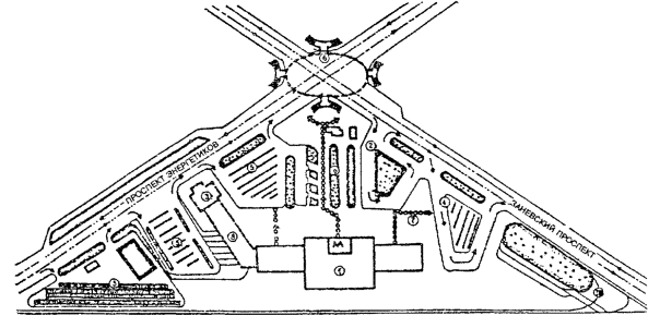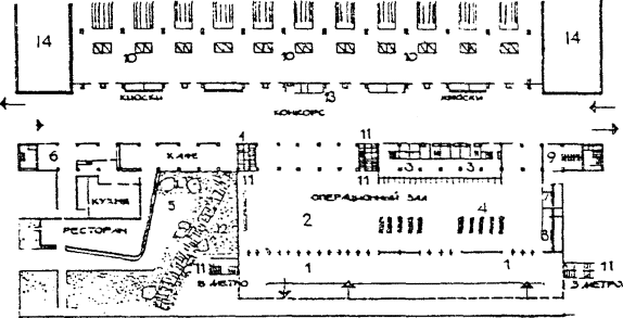 выходы; 6 - учреждения обслуживания пассажиров; 7 - проезды Рис. 30. Схема