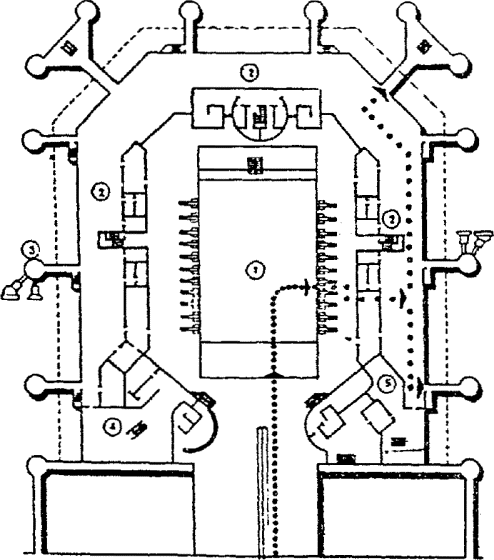 зал-вестибюль; 4 - кассы; 5 - входы и