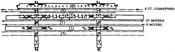 - подземные переходные мостики над железнодорожными путями; 3 - наземный распределительный