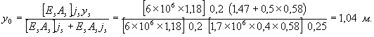 (174205 тсм2), где ys = y's - y0 = y + 0,5yf - y0 = 1,47 + 0,29 - 1,04 = 0,72 м. Приведенная жесткость на изгиб системы фундамент - стена равна (формула (4) приложения 4): [EJ] = [EJ]f + [EJ]s = 1094100 +
