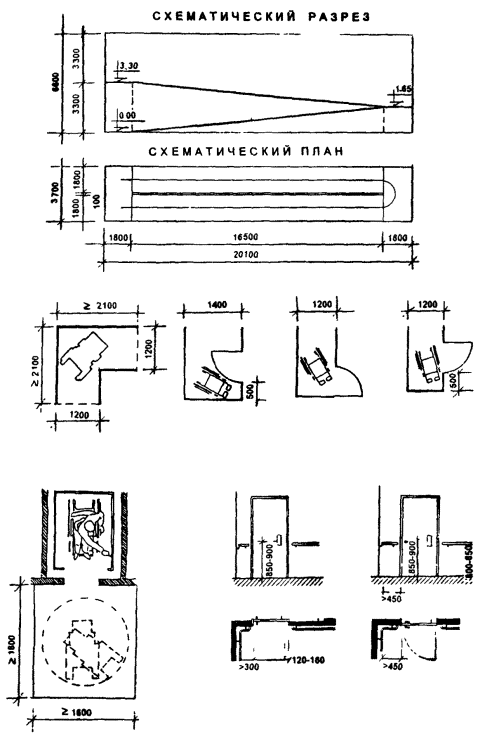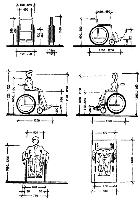 (ширина коридоров, проходов, наличие специальных лифтов) и отдельных их