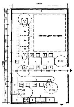 обеденного зала, необходимо полученную вместимость округлить до четырех (в
